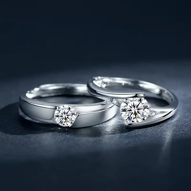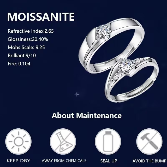 2pcs 925 Sterling Silver 0.5ct Moissanite Couple Rings, Engagement & Wedding Proposal, Valentine'S & Anniversary Gift, Romantic Fashion Rings