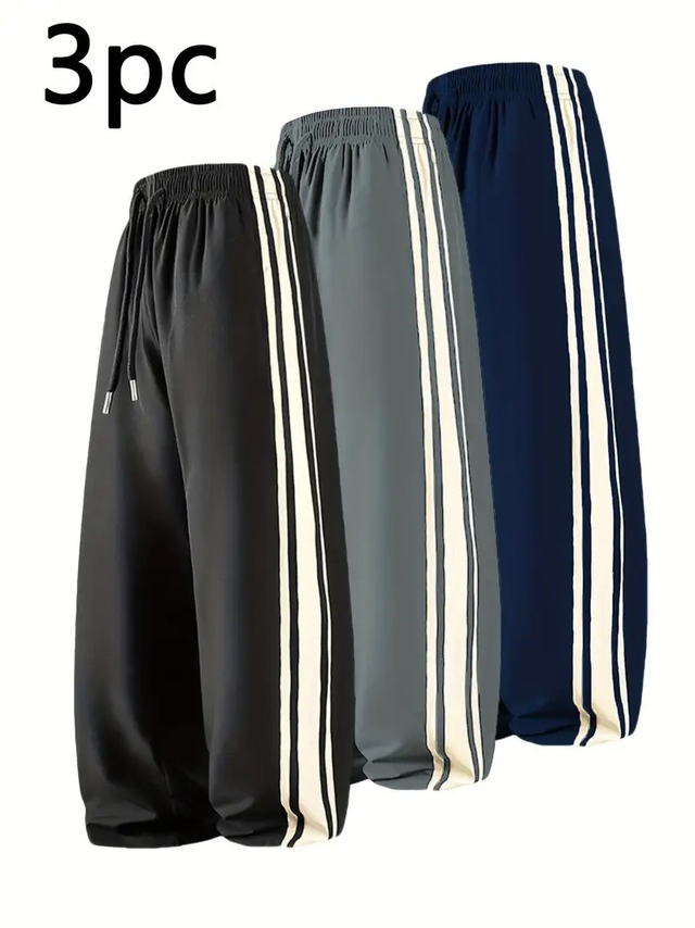 3pcs Men's Casual Drawstring Waist Pants, Polyester Fabric, Loose Fit with Pockets, Regular Length, Weekend Style for Spring and Autumn, Comfortable All-Season Wear, Machine Washable, 3pcs Set