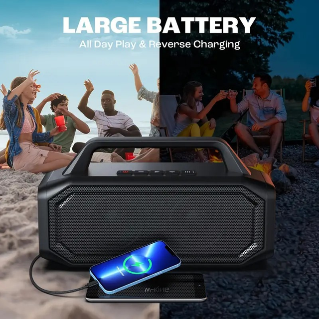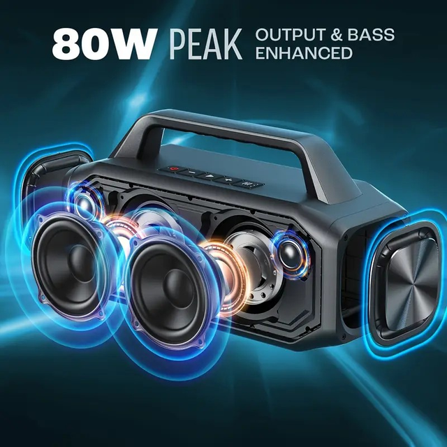 60W Wireless Speaker, W-KING 100W Peak Portable Loud Wireless Speaker, Waterproof Outdoor Party Large Speakers With Subwoofer, Clear Sound, Powerful Punchy Bass, USB Playback, Power Bank, Tf Card, Aux, EQ