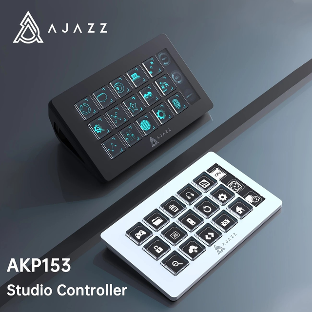 AJAZZ Live Streaming Control Console AKP153E Desktop Assistant Control Panel Controller for Stock Trading Live Streaming, Programmable Shortcut Keyboard with 15 Keys - Flow Controller, 15 Macro Keys to Trigger Actions in Applications And Software Like OBS And Twitch, Custom Console for Photo And Video Editing, Real-Time Streaming, Pc/Mac.