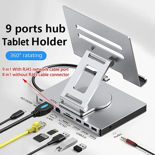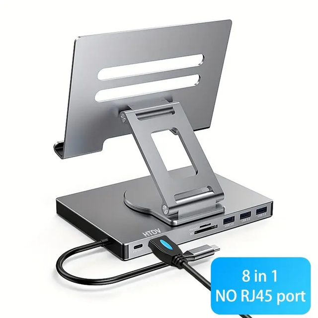 All-in-One Rotating Stand, Type-C Docking Station, 4K/60Hz Gigabit Ethernet Port, USB Splitter