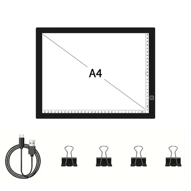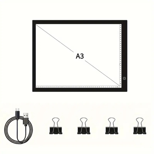 An A2/A3/A4/LED drawing board with double light strips, high brightness without mesh points, high-transmittance acrylic board, uniform light eye protection, three-level dimming, lightweight touch operation, suitable for animation, painting, sketching, copying, multi-functional diamond Painting, workbench copy table, self-contained clip set office drawing tools and kits