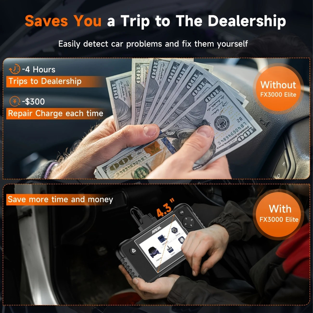 [Humanized Design & 24/7/365 Customer Service] FX3000 Elite check engine code reader is equipped with a large 4.3" TFT color screen, upgraded with the latest 2024 chip and a model that is more comfortable to touch than other scanner for car.ANCEL provides 24h hassle-free customer service to solve the problems you encounter. Any questions please feel free to con - tact us.