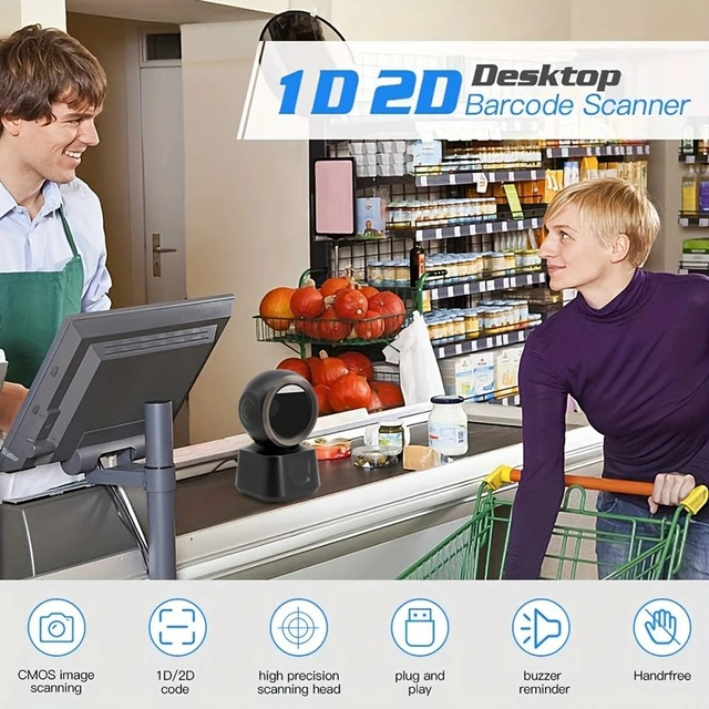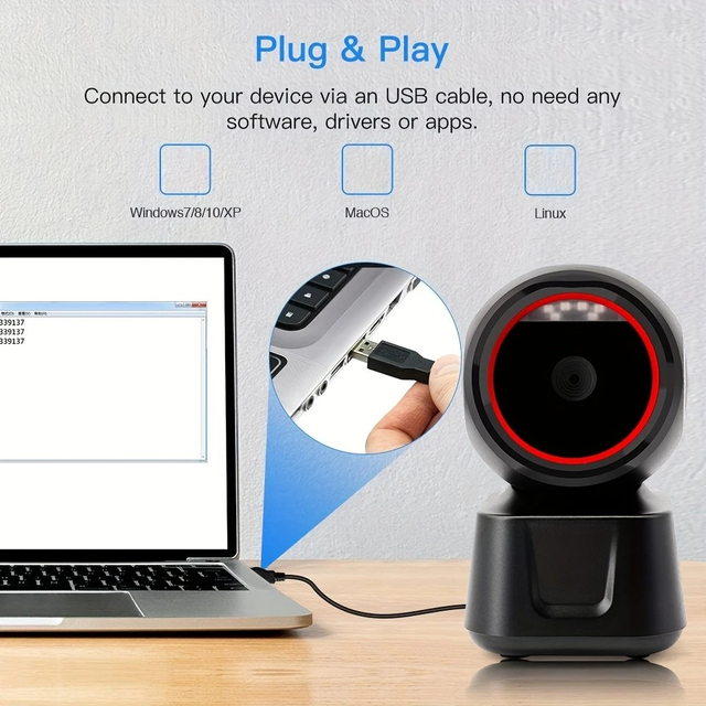 Barcode Scanner, 1D/2D Automatic Sensor Scanning, USB Strip Code Scan Platform, ABS Material, No Battery Required, for Office Use, Office Electronics | Modern Barcode Reader | Durable Scanner