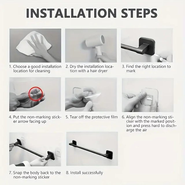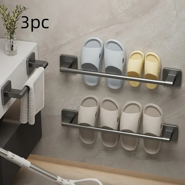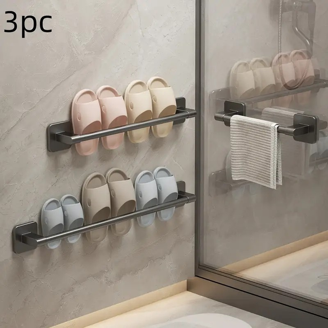 Black No-Drill Wall-Mounted Towel Rack 3pcs
