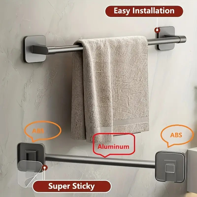 3pcs Black No-Drill Wall-Mounted Towel Rack, Strong Load Capacity Single Bar Holder for Towels & Washcloths, Space-Saving Bathroom Organizer, Modern Design with Sleek Finish, Perfect for Home & Kitchen Use, Contemporary Decor, Towel Racks