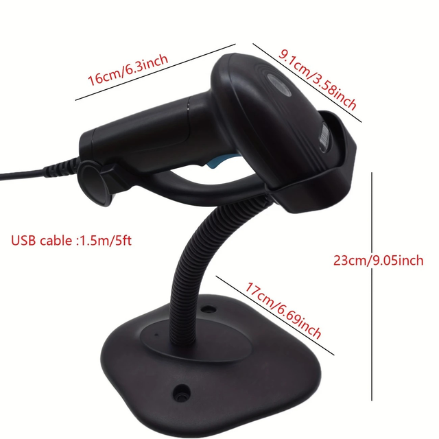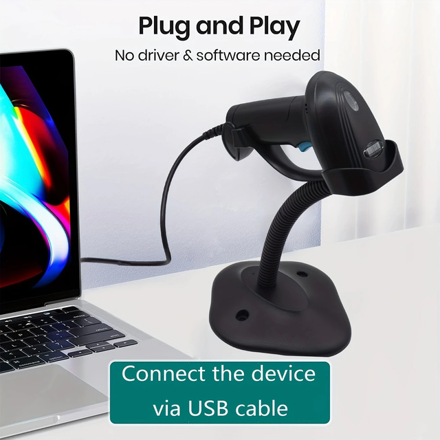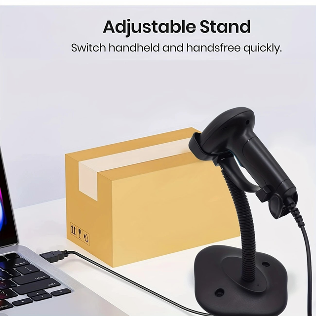 Blifumn 1D/2D Barcode Scanner with Adjustable Stand, USB Powered, 36V or Below, Plug & Play for Supermarket, Bookstore, Warehouse, Office Equipment, POS Device, PC Material