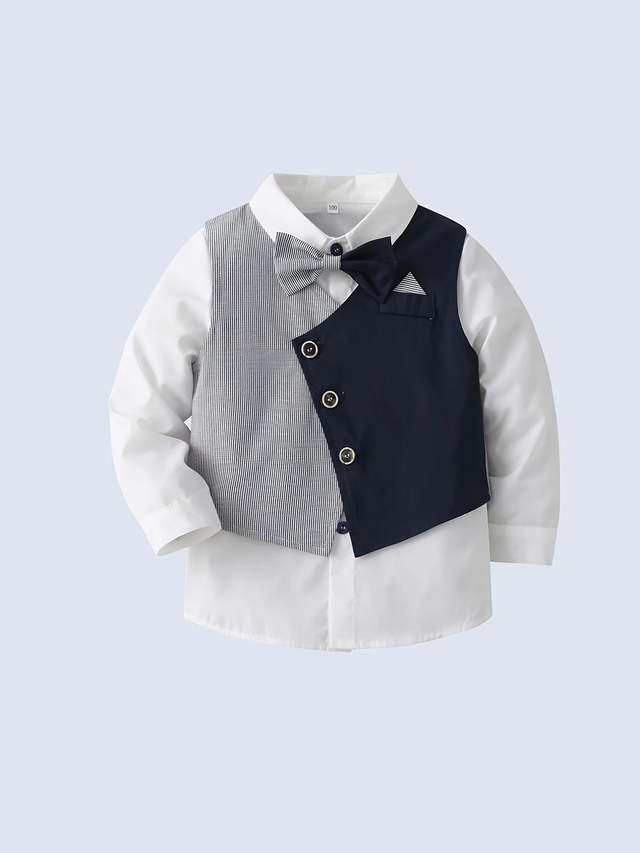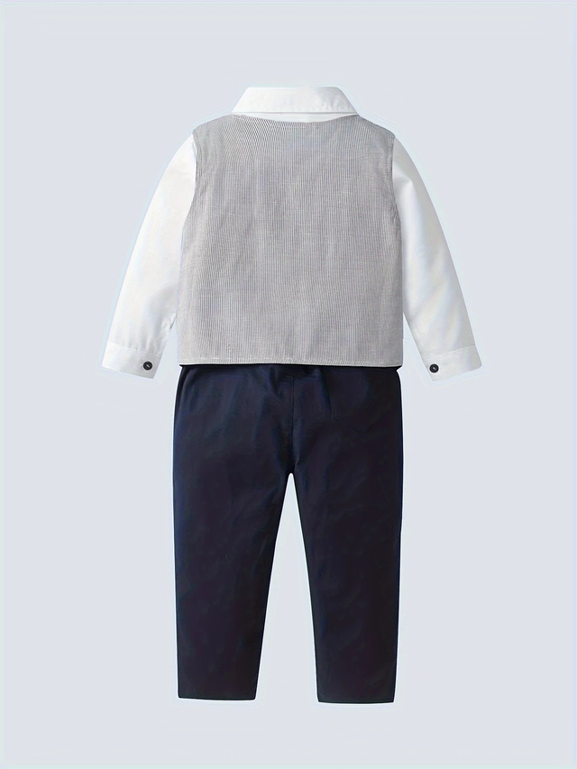[Romantic Gentleman Outfit] 4pcs Boarnseorl Gentleman Outfit Set - Long Sleeve Shirt with Bow Tie, Vest & Pants - Romantic Fashion for Special Occasions