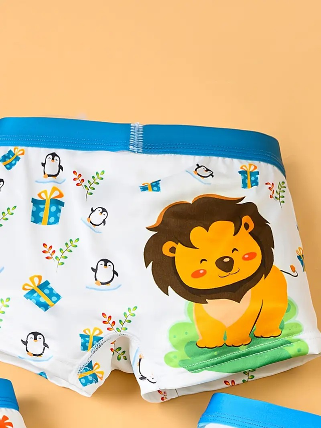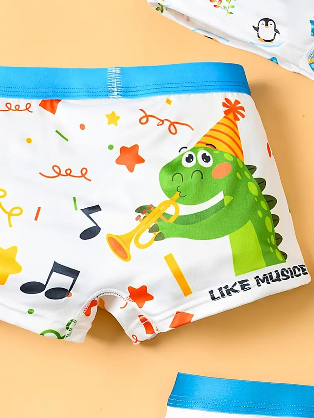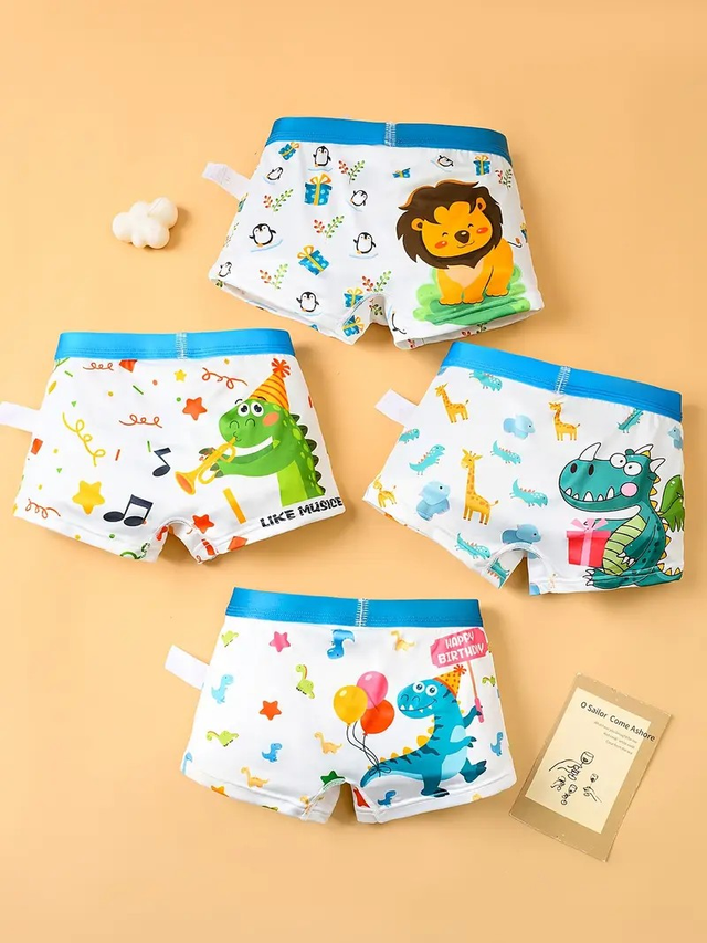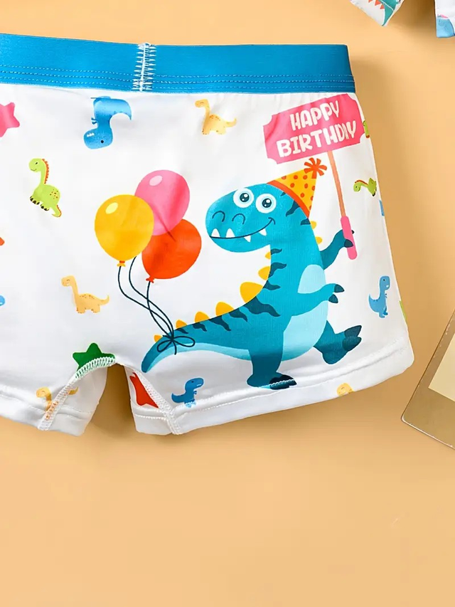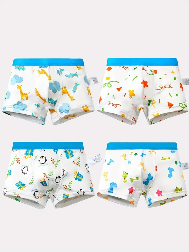 Boys, 4pcs Boys' Soft Breathable Boxer Briefs with Dinosaur & Animal Party Prints