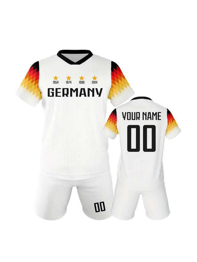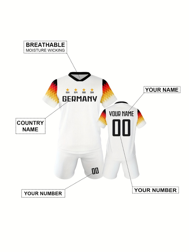 Customizable Boys' Germany Soccer Jersey & Shorts Set - Quick-Dry, V-Neck, Polyester Football Training Outfit with Personalized Name Detail, Ideal for Team Sports & Spring/Summer Activities, Soccer Clothes, Perfect for Outdoor