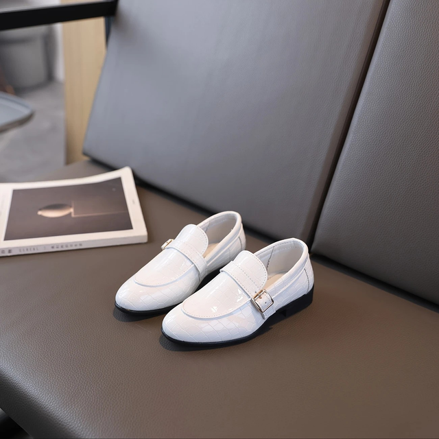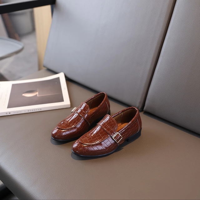 Boys' Lightweight Breathable Oxford Shoes - Slip-On Low-Top Formal & Casual Shoes with Striped Pattern, Pointed Toe PU Upper & TPR Sole for Weddings, Indoor Events, Spring/Autumn (Brown/White), Boy Shoes
