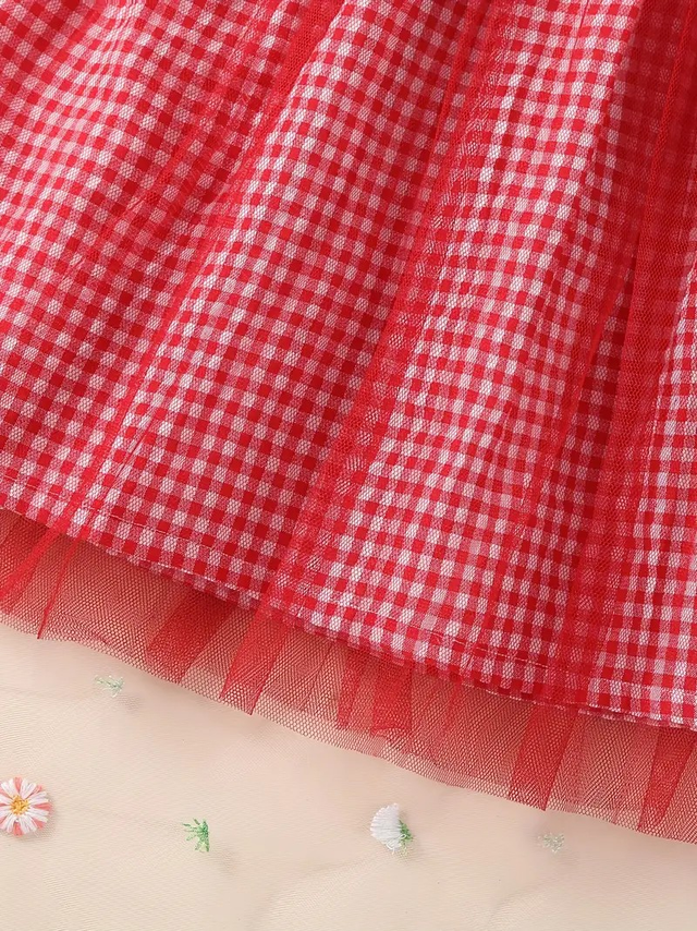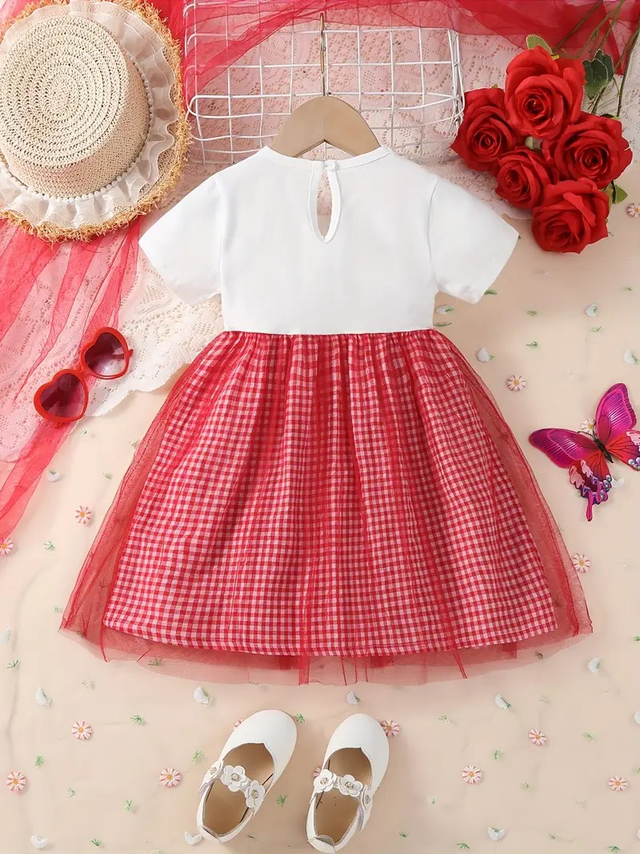 Children's Summer Dress Plaid Short Sleeve Dress Girls' Princess Skirt Kids' Fashion Casual Girl Two-Piece Summer Skirts