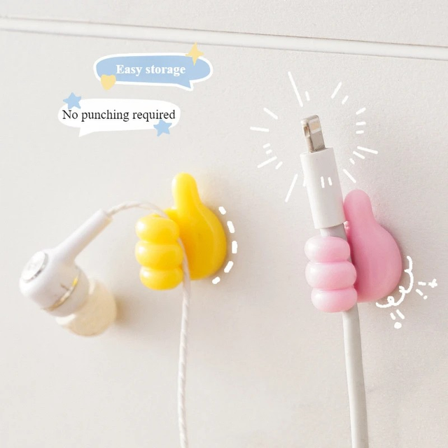 50pcs Colorful Thumbs-Up Charger Cable Organizers - Easy-to-Install, Wall-Mounted Plastic Hooks for Data Cables & Power Adapters, Multi-Functional Finger Grip Holders for Home & Office, Cable Management|Playful Design|Durable Plastic, Cable Clips, Utility Hook, Utility Hooks