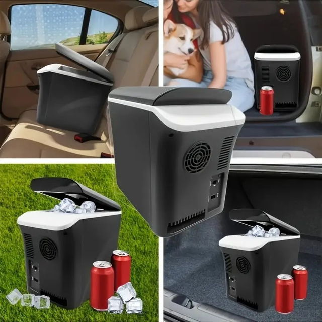 7.5L Compact Car Fridge - Portable Refrigerator with USB Port, 12/24V DC Energy-Efficient Cooler for Travel, Camping, and Outdoor Adventures, Black, Semiconductor Cooling System, Car Cooler