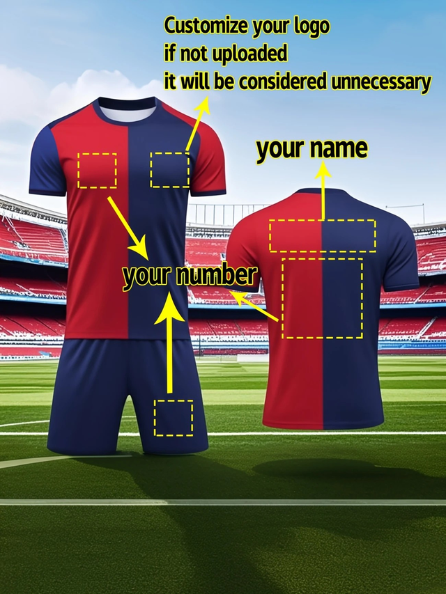Custom Personalized Team Name and Number with LOGO, Round Neck Polyester Football Kit, Breathable Mesh Fabric, Quick-Dry, Suitable for Teenage Teams Competitions and Individual Outdoor Training Over 13 Years Old, Perfect for Outdoor