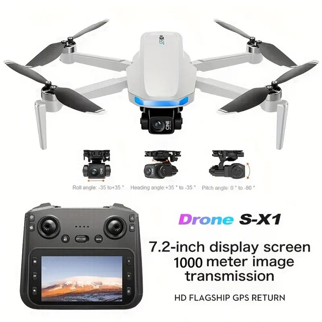 S-X1: 50fps 1080P Dual Camera, Suitable for Quick Action - 3-Axis Gimbal, 20-30 Minute Flight and Large Screen Remote Control, High Quality Drone, Outdoor Flying, Portable Gimbal, Durable Build, Remote Control Drone, Tech Enthusiasts, Drone, Flight Controller, Drone With Screen On Remote, Mini Drone