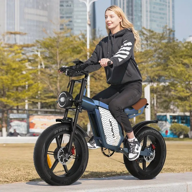 All-Terrain Adult Electric Bike with Dual Brushless Motor 250W, 48V 23Ah Removable Battery, Hydraulic Disc Brakes & Full Suspension, 15 MPH Max Speed, 7-Speed - Blue Off-Road Mountain Camping Commuting Ebike, Electric Bike for Adults
