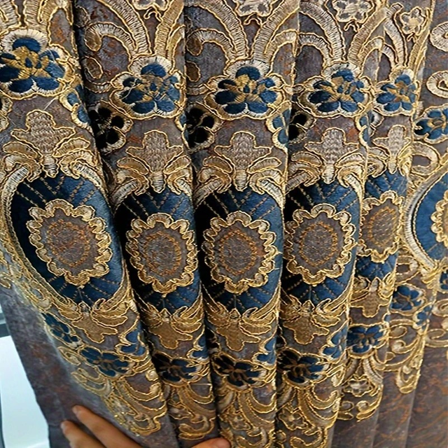 2pcs Elegant Blackout Curtains with Golden Floral Embroidery - Luxurious Velvet, -Resistant, Machine Washable, Grommet Top for Living Room & Dining Room Decor, Living Room Decor | Golden Floral Design | Durable Curtains, Curtains for Living Room