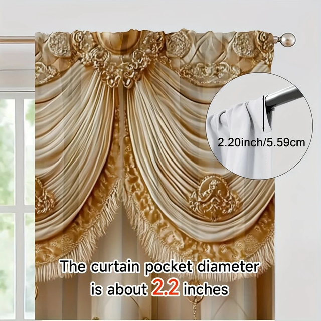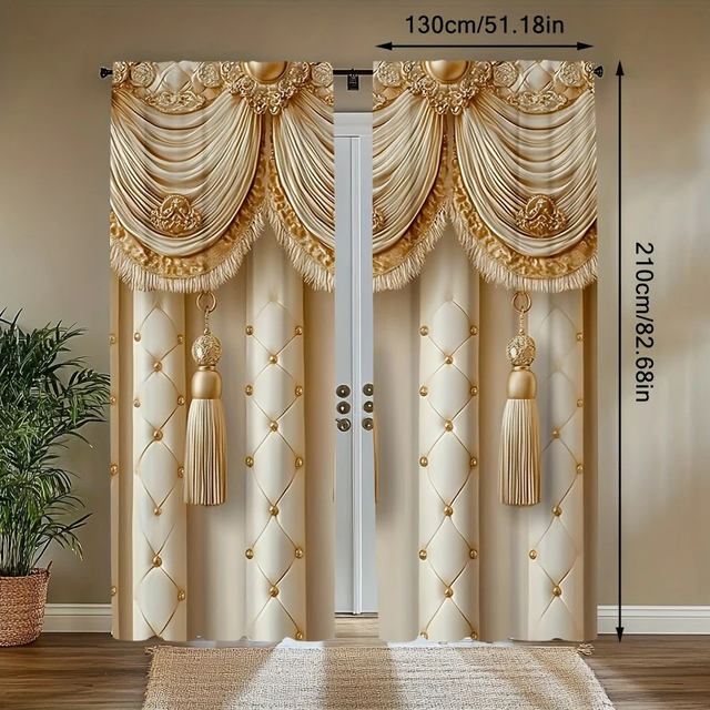 2pcs Elegant European Style Semi-Sheer Curtains - Warm & Golden Rod Pocket Drapes with Tassel Detail for Bedroom, Kitchen, Bathroom, Living Room - Stylish Privacy Accent, Bedroom Decor | Luxurious Curtain Design | Durable Polyester, Curtains for Living Room