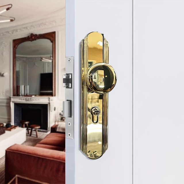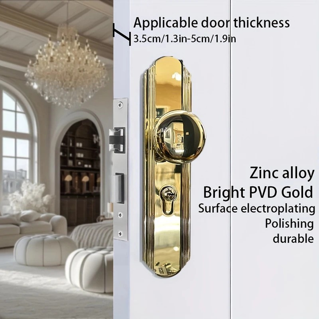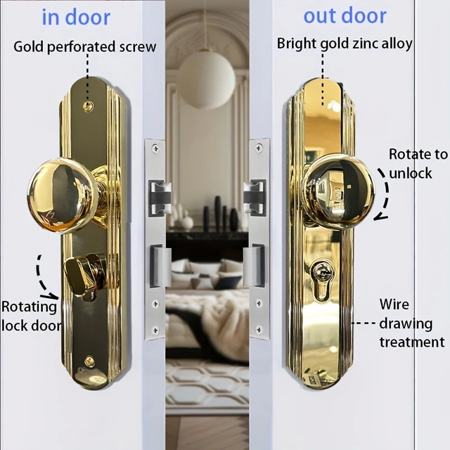 Elegant Golden-Tone Oval Door Knob Set - Zinc Alloy, Includes Locks & Keys, Perfect for Home & Commercial Use in Bedrooms, Bathrooms, Hotels, Offices, Schools, and Storage Rooms - Complete with Installation Screws