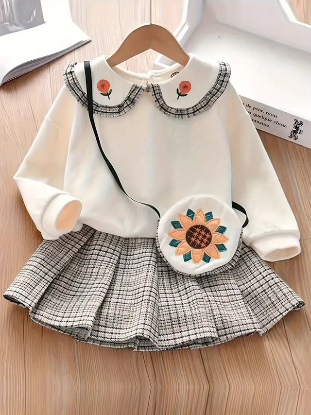 [Girls' Embroidered Outfit Set] Embroidered Long Sleeves Two-Piece Outfit | Girls' Spring/Autumn Half-Body Skirt Set