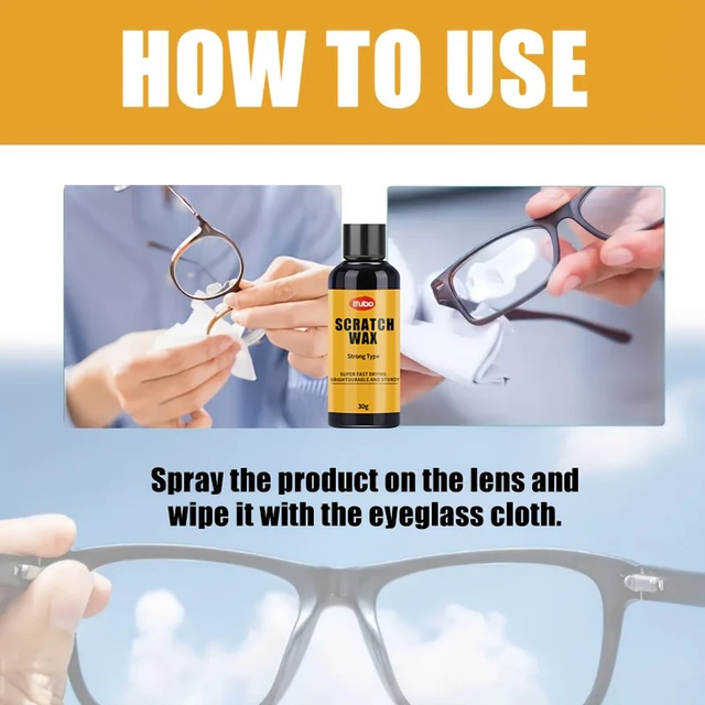Glasses Repair Resin - Glass Eyeglass Restoration Cream, Scratch, Yellowing, Scratches, Wear, No-Grind Lens Repair Milk, Glass Lens Scratch Repair Paste, Suitable for Reading Glasses, Myopia Glasses, Swimming Goggles, etc