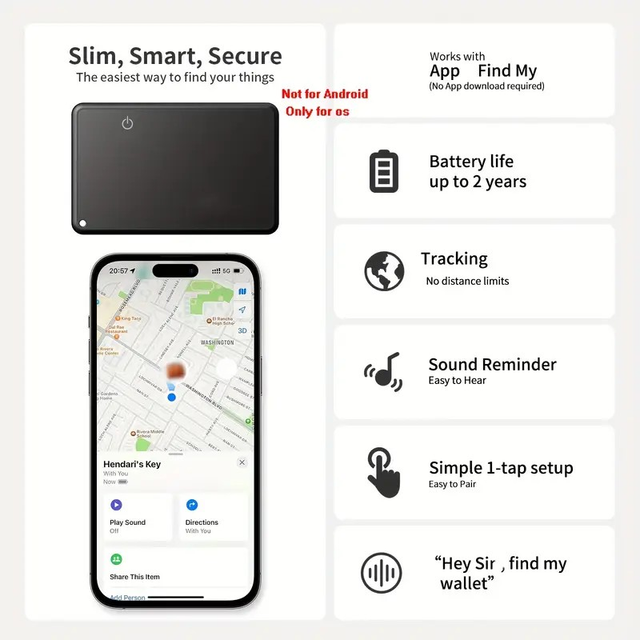 Wallet Tracking Card, Wallet Lookup Card, Global GPS Locator, Anti Loss Tracking, Wireless Charging Compatible with Ios Find My for Iphone And for ipad (Not Compatible with Android)