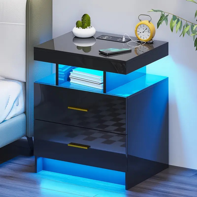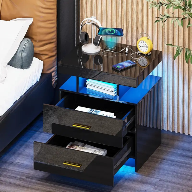 Gurexl LED Bedside Table with Charging Function