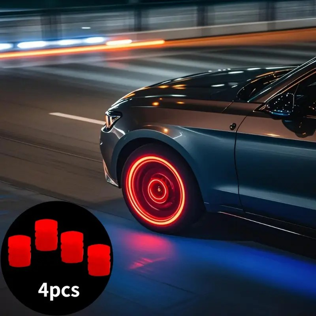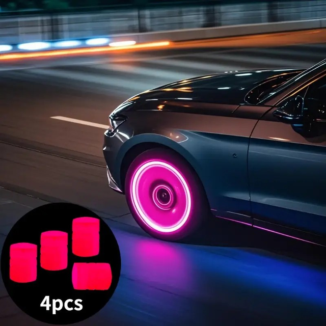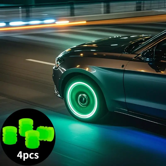 4pcs Hexagon Tire Luminous Valve Caps - Glow-in-the-Dark, Long-Lasting Blue Light Effect, Fit for Cars, Bikes & Motorcycles, Easy Installation, Transform Your Vehicle into a Cool Nighttime Visibility Enhancer