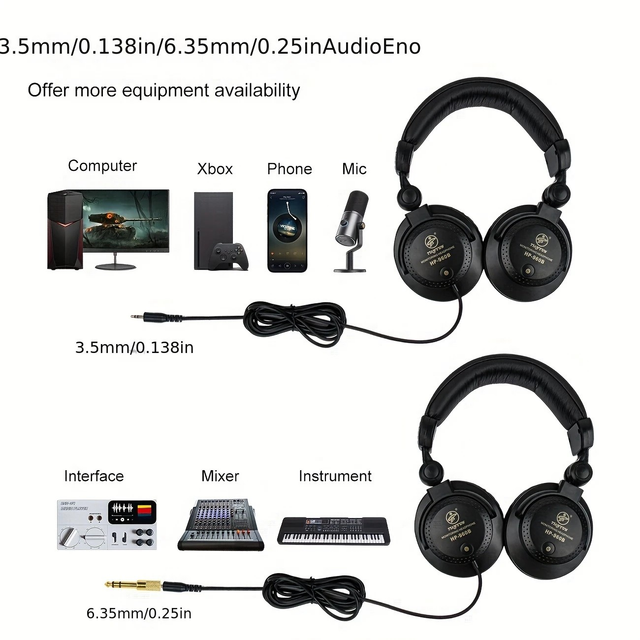 URIZONS High-end Studio Wired Monitor Headphones Over Ear Stereo Music Earphones Foldable & Retractable DJ Headsets for Piano/Drum/Computer/Electronic Keyboard etc Music electronic equipment with 3.5mm to 6.5mm Adapter