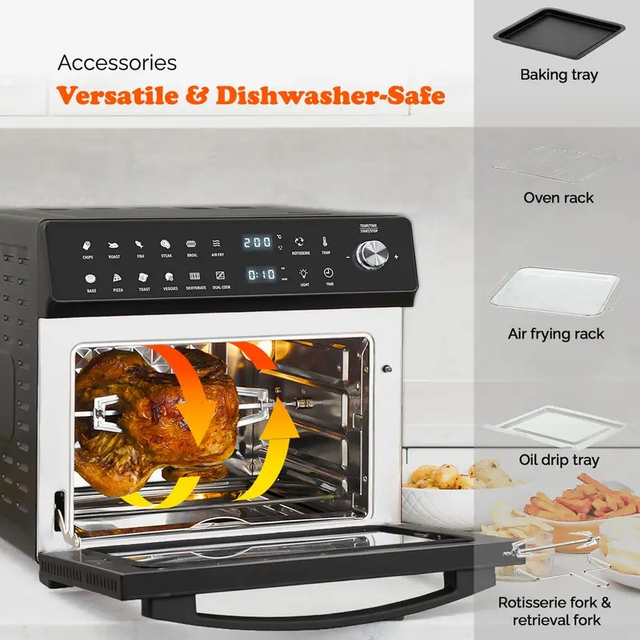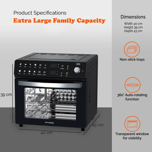 Innoteck Kitchen Pro 26L Digital Air Fryer - Large Air Fryer for Family - Oil-Less Cooking, Timer & Temperature Control - Dual Cook, 360°Hot Air Circulation Technology, 6 Accessories - 60℃-230℃, 1700W