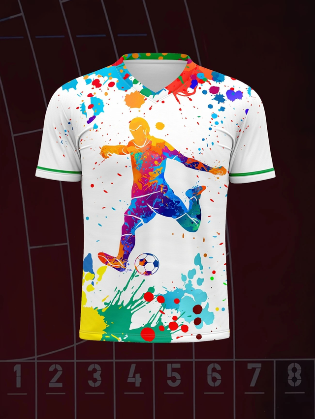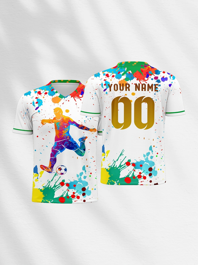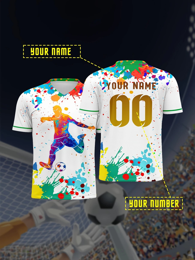 Customizable Kids Soccer Jersey, V-Neck Polyester Football Top with Personalized Name & Number, Medium Stretch, All-Over Print, Casual Sports Style for Boys & Girls, Suitable for Training, Beach, Weekend - Spring/Summer/Fall