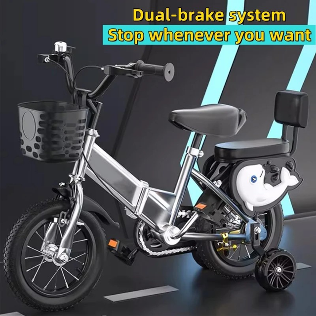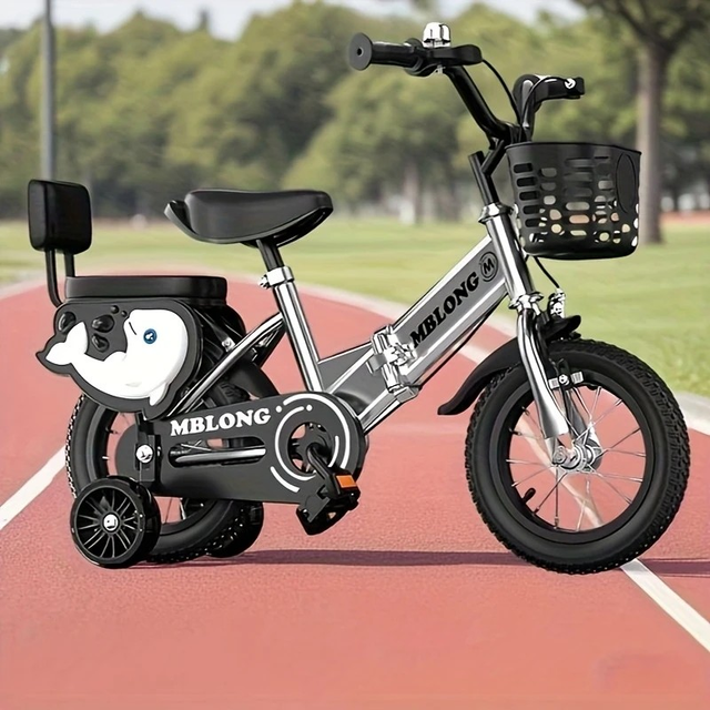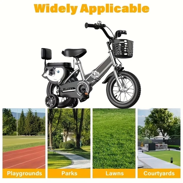 Kids' Mountain Bike with Training Wheels - Black & White Design, U-Brake, Carbon Wheels, Ergonomic Handlebars, Lightweight Frame for Boys & Girls, Perfect for Camping & Spring Outings, Bike for Kids, Outdoor Playtime, Playful Design, Durable Construction