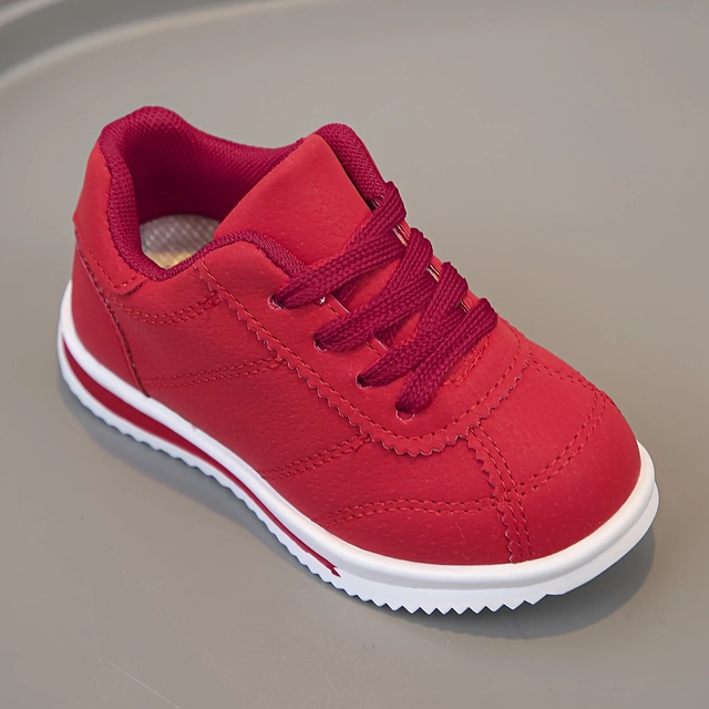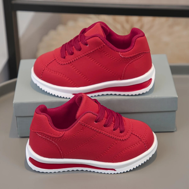 Kids' Red Sneakers - Casual & Sporty Lace-Up Shoes with Soft Rubber Sole, Lightweight and Versatile for Travel, Round Toe, All-Season Wear, Casual Footwear | Stylish Casual Shoes | Comfortable Footwear