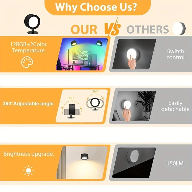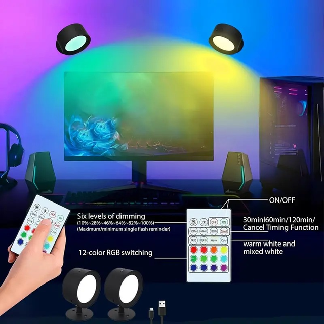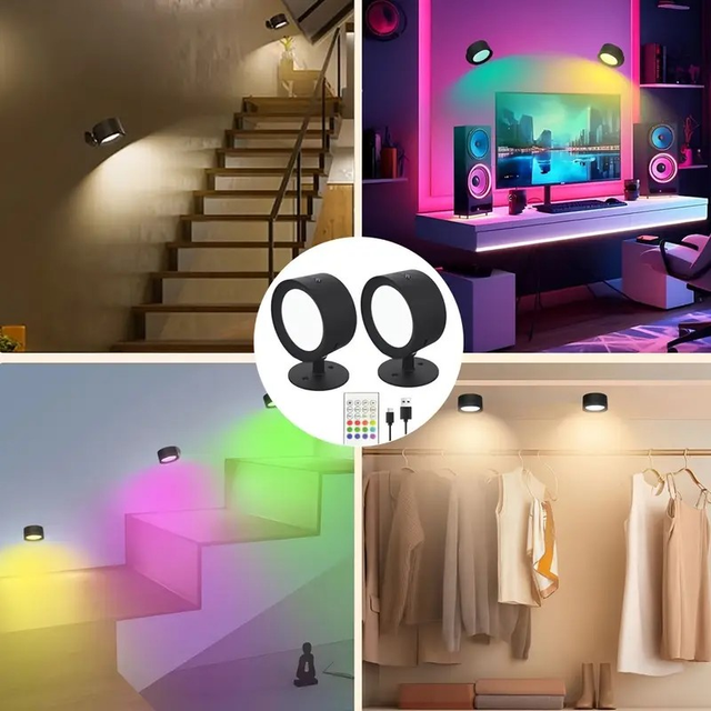 2pcs LED Ambient Wall Light, 12Rgb+2Color, 360 ° Rotation, with Remote Control, USB Charging, LED Frame Art Display Light, Portable Indoor Lighting, Reading, Night And Sleep Lights, Suitable for Living Rooms, Bedrooms, Corridors, Headboards
