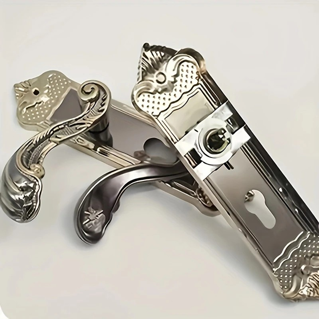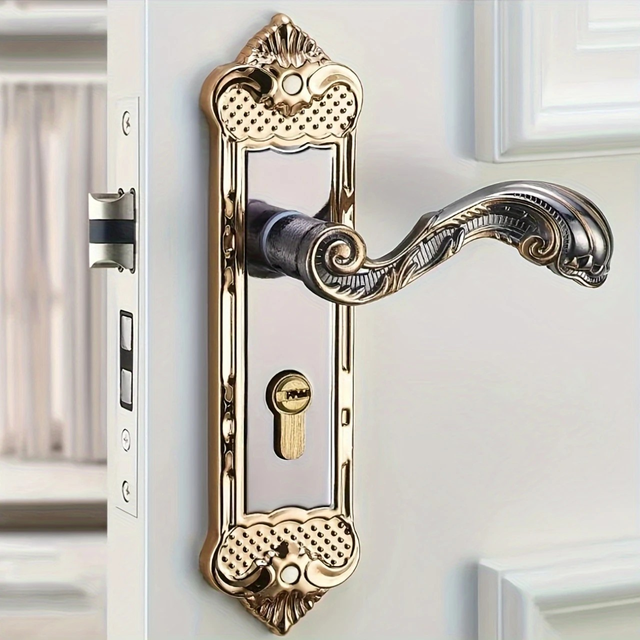 Luxury Metal Door Handle Set with Keys - Elegant Scrollwork Design, Universal Fit for Bedroom & Bathroom, No Electricity Required, Decorative Door Handle|Ornate Door Handle|Metal Construction, Door Handle And Lock