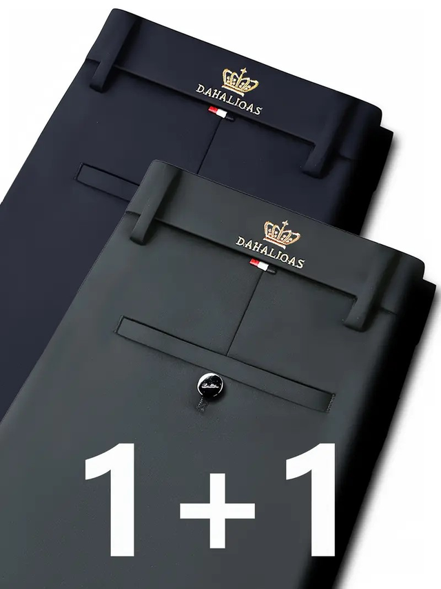 2 Pairs of Men'S High Stretch Wrinkle-Resistant Straight-Leg Suit Trousers - All-Season Machine Washable Business Casual Trousers with Crown And Dahlia Pattern, High Waist Design, Button Zipper Closure, Professional Fit, Classic Style, Quality Craftsmanship, Fashionable Menswear