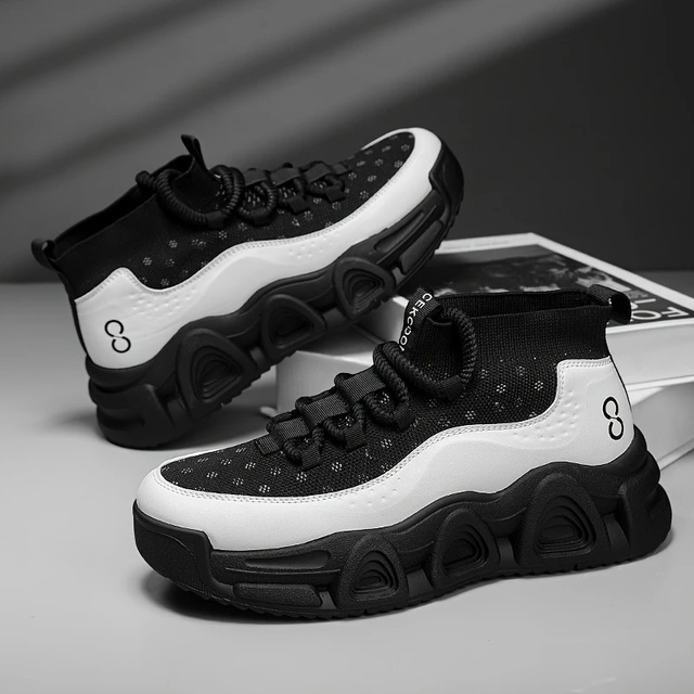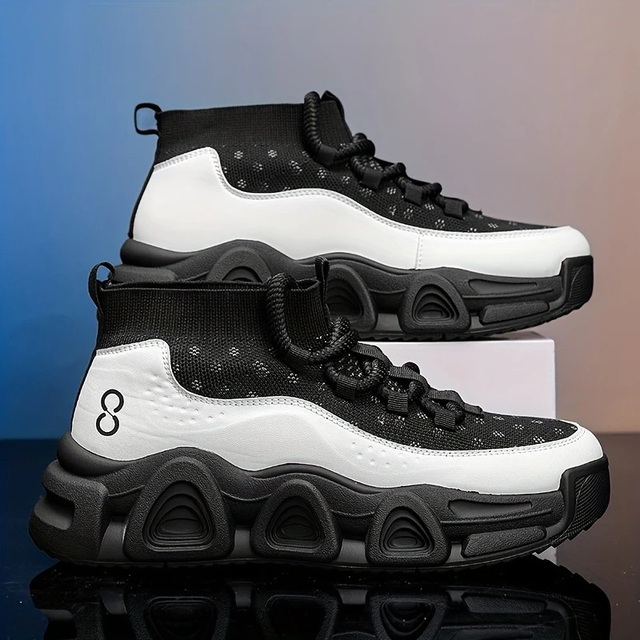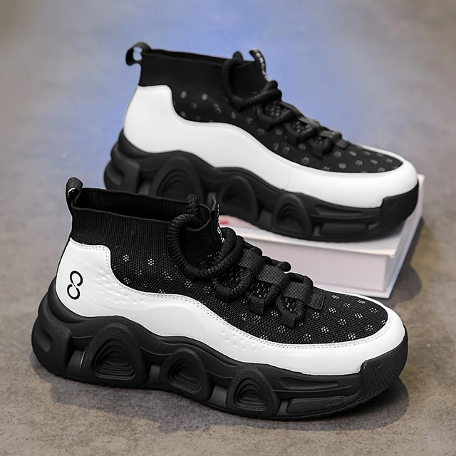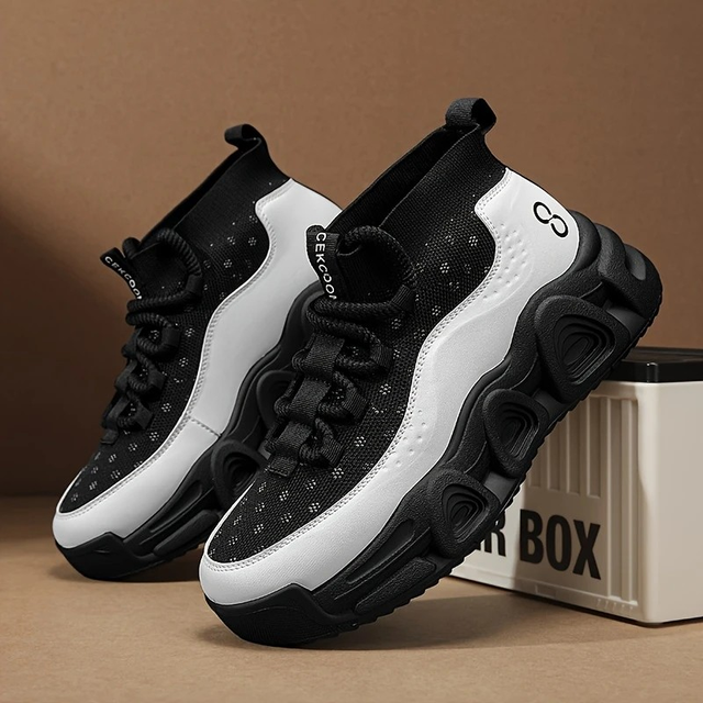 Men'S All-Season Sneakers - Black & White Mesh Casual Shoes with Lace-Up Closure, Stylish Round Toe Design, Perfect for Running and Casual Wear, Allseason Sneakers|Stylish Casual Shoes|Laceup Closure