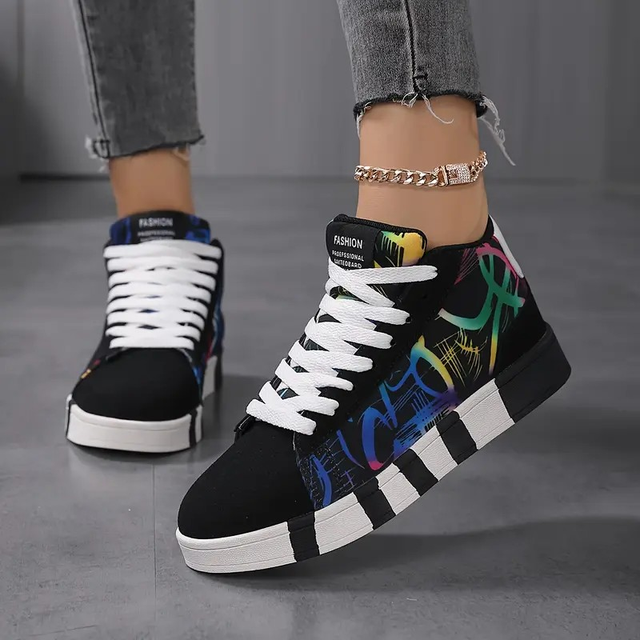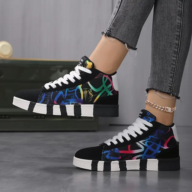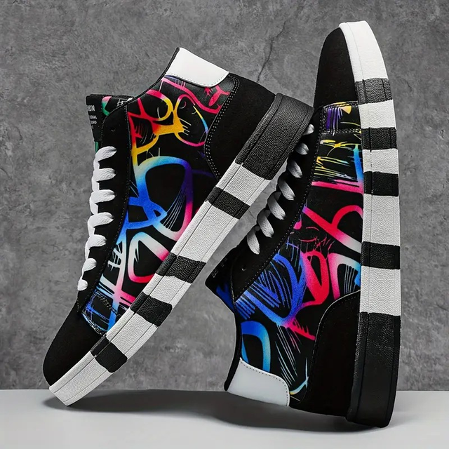 High-Top Skate Sneakers - Vibrant Graffiti & Black/White Design, Lightweight & Comfortable, Durable Rubber Sole, Lace-Up Casual Sports Shoes for All Seasons, Skate Shoes