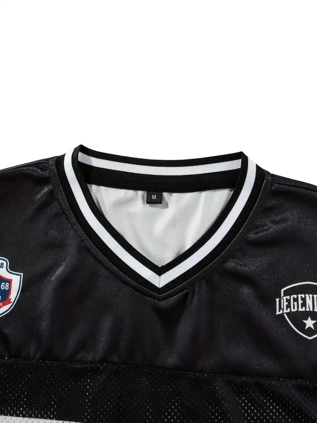 Men's Black V-Neck Athletic Jersey T-Shirt