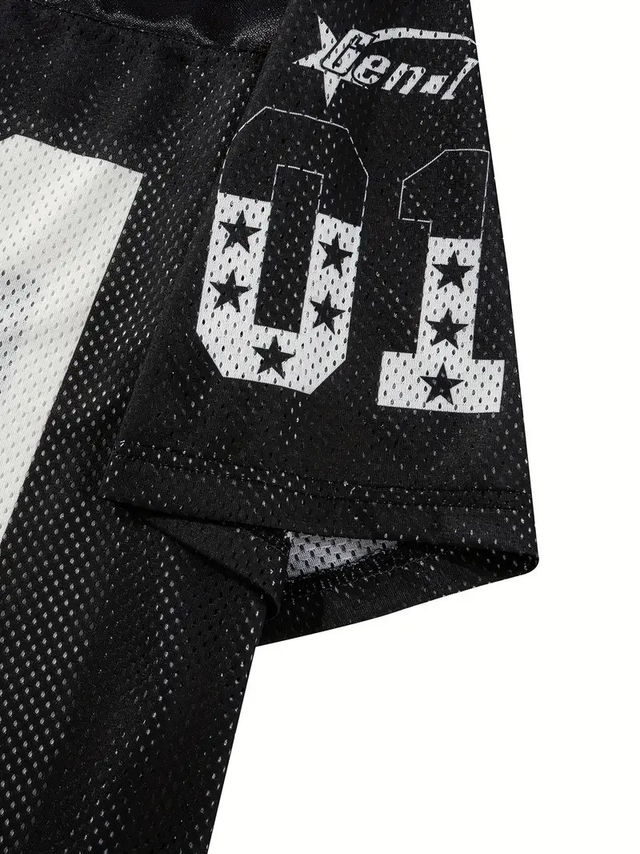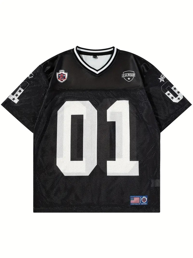 Men'S Black V-Neck Athletic Jersey T-Shirt - Breathable, Quick-Dry, Stretchy Short Sleeve with Number 01 & Star Design, Perfect for Summer Casual Wear, Casual Summer Wear | Vneck Tshirt | Comfortable Fit