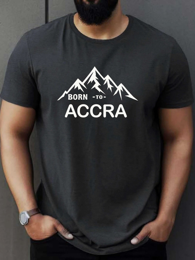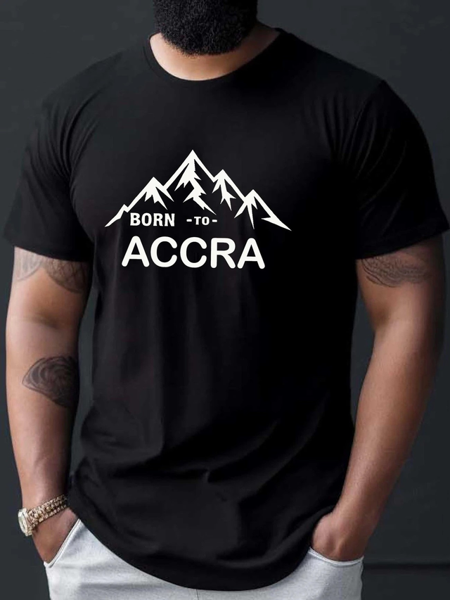 Men'S "Born to Accra" Graphic T-Shirt - Casual Short Sleeve Crewneck, Black with Mountain Design, Lightweight Polyester Blend for Summer, Everyday Tshirt | Mountain Graphic Tee | Comfortable Fit