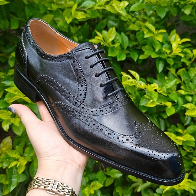 Men's Classic Black Brogue Oxfords - Genuine Leather Lace-Up Dress Shoes with Wingtip Design for Business, Weddings & Formal Occasions, Formal Footwear | Vintage Style Shoes | Genuine Leather Lining, Vintage Shoes