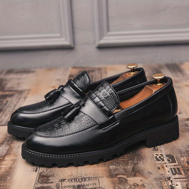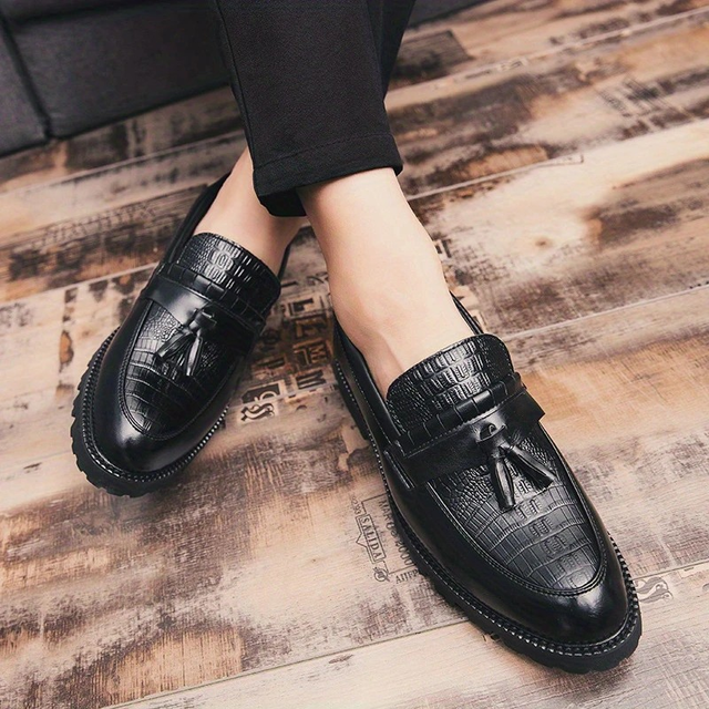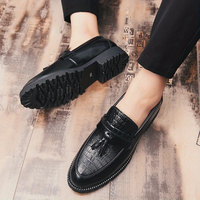 Men's Classic British Style Slip-On Loafers - Burgundy Formal Dress Shoes with Brogue Detailing, Cushioned EVA Insole & Non-Slip Rubber Sole for Weddings, Business, Parties, Wedding Shoes, Party Footwear, Elegant Footwear, Durable Construction, Business Professionals, Business Casual, Sophisticated Footwear, Comfortable Fit, Stylish Footwear, Office Wear