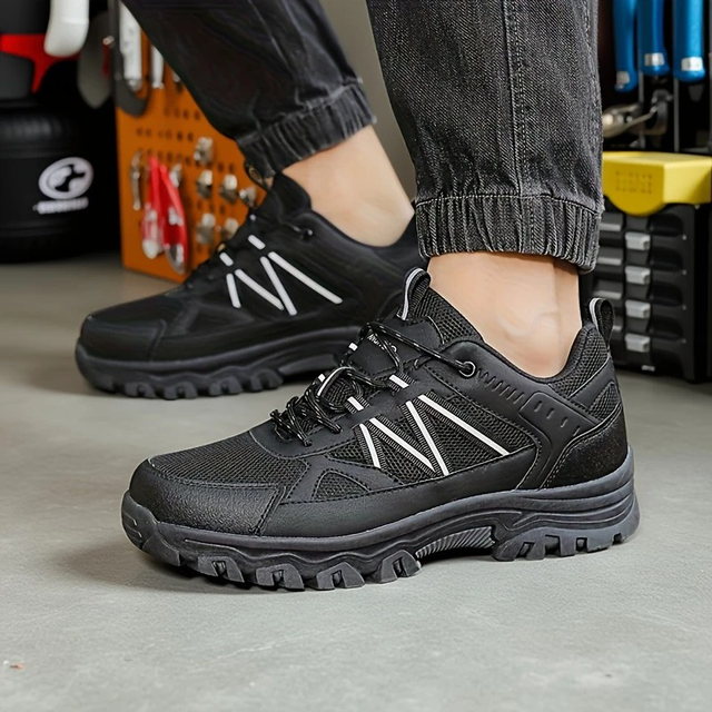 Men's Durable Anti-Slip Breathable Low-Top Hiking Shoes - All-Season Outdoor Trekking, Hunting & Climbing Shoes with Rubber Sole Traction, Fabric Upper & Lace-Up Closure (Black), Hiking Boots, Sleek Rugged Design, Metal Eyelets Reinforcement