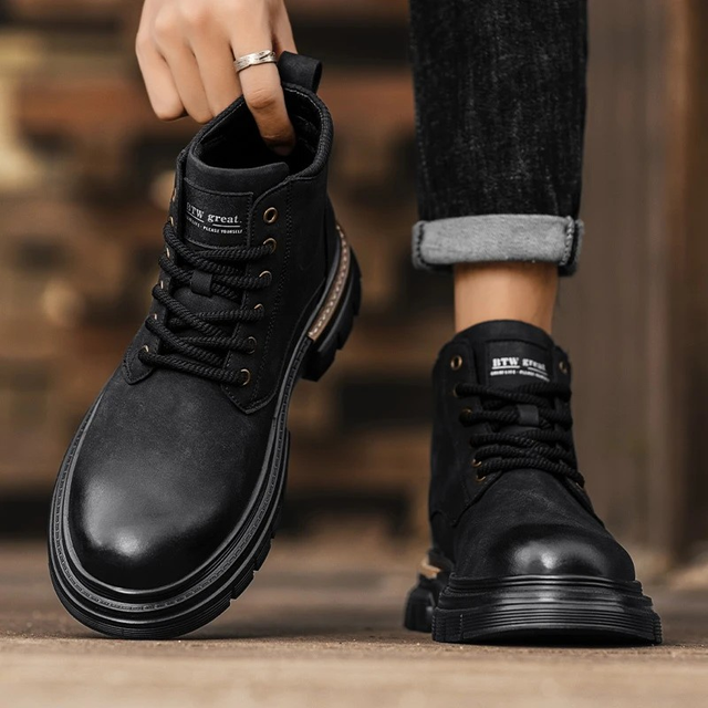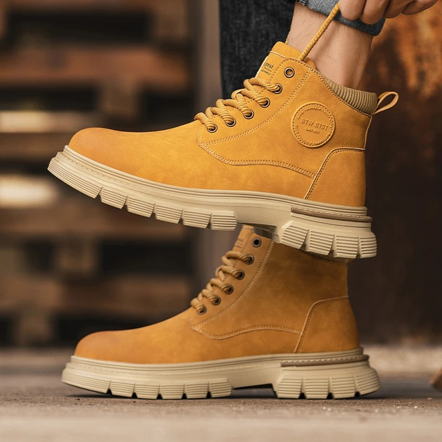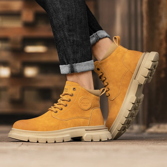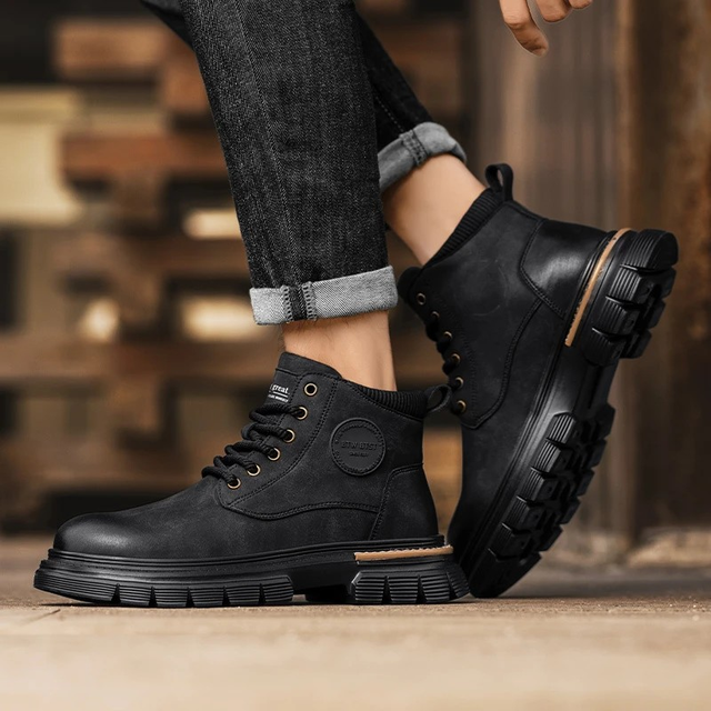 Men's Durable High Quality Anti-Slip Work Boots - PU Upper & Rubber Sole Construction Boots with Breathable Fabric Lining, Lace-Up Ankle Support for Hiking, Outdoor, Work & Casual Wear - All-Season Comfort, High Quality Boots