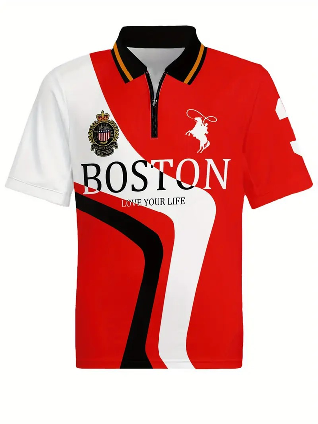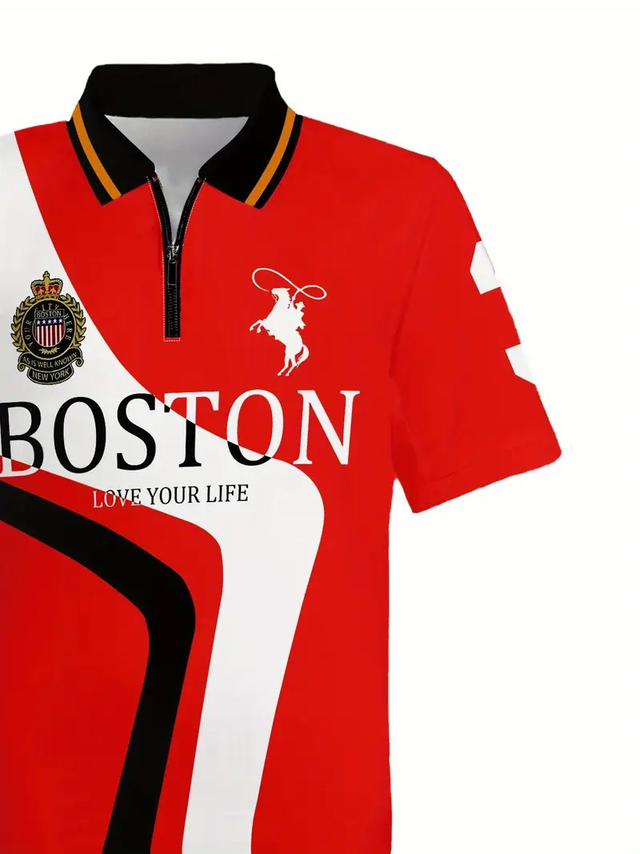 Men's Fashion Casual Sports Shirt Summer Fashion Letter Print with Lead Men's Polop Shirt Comfortable and Breathable Suitable for Outdoor Sports
