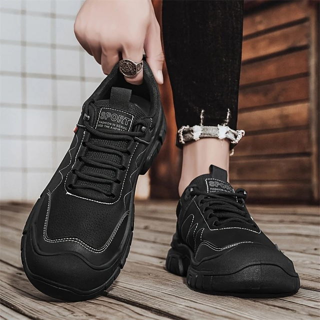 Men's Fashion Low-Top Work Shoes - Durable, Non-Slip Outdoor Sneakers with Lace-Up Closure and Comfortable PU Material, for Autumn, Spring