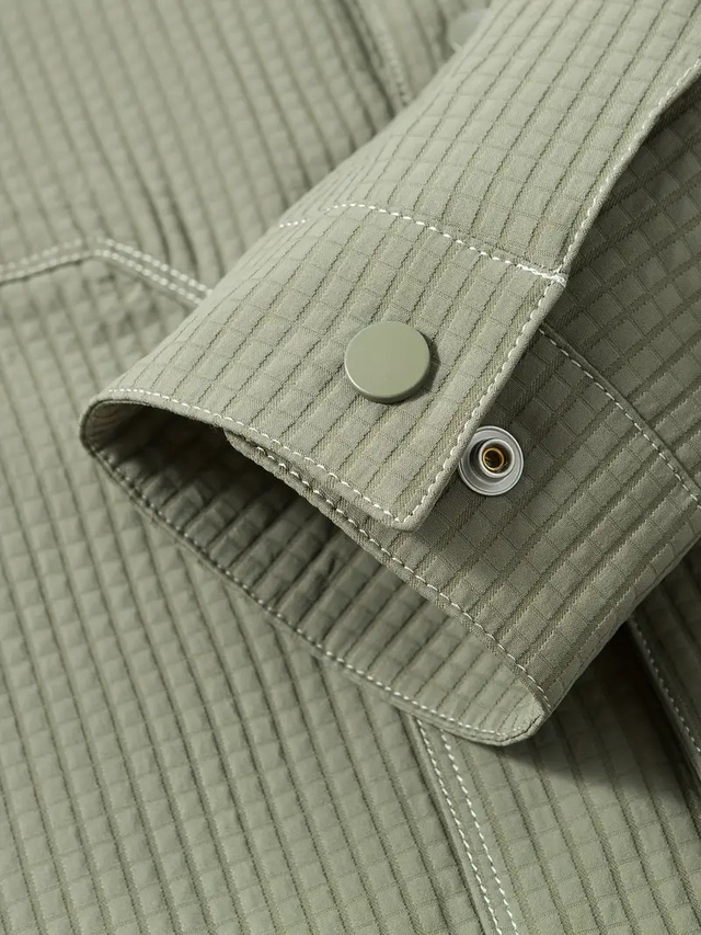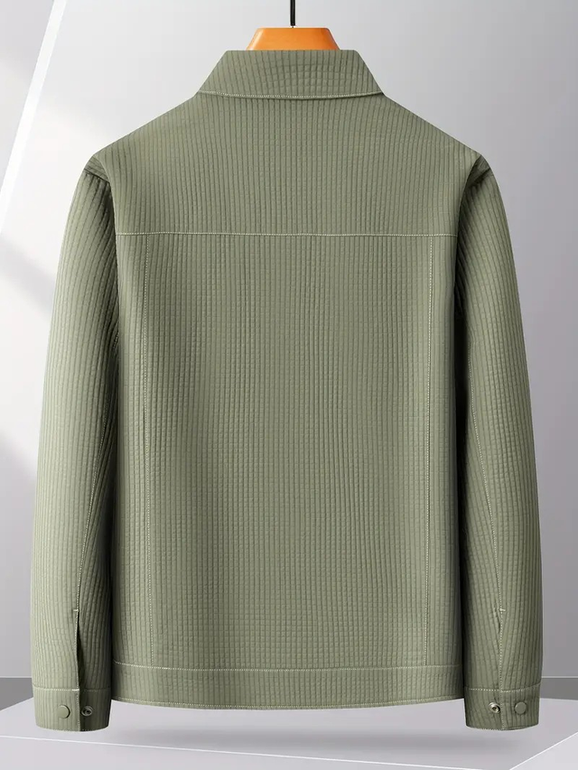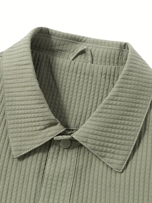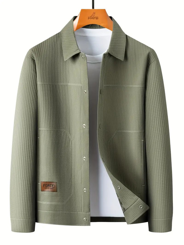 FORTEI Men'S Casual Plaid Jacket - Spring Versatile Turn- Collar with Snap Button, Regular Fit Long Sleeve Polyester Coat with Pockets, Olive Green, FORTEI
