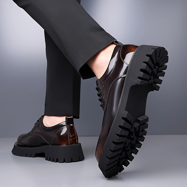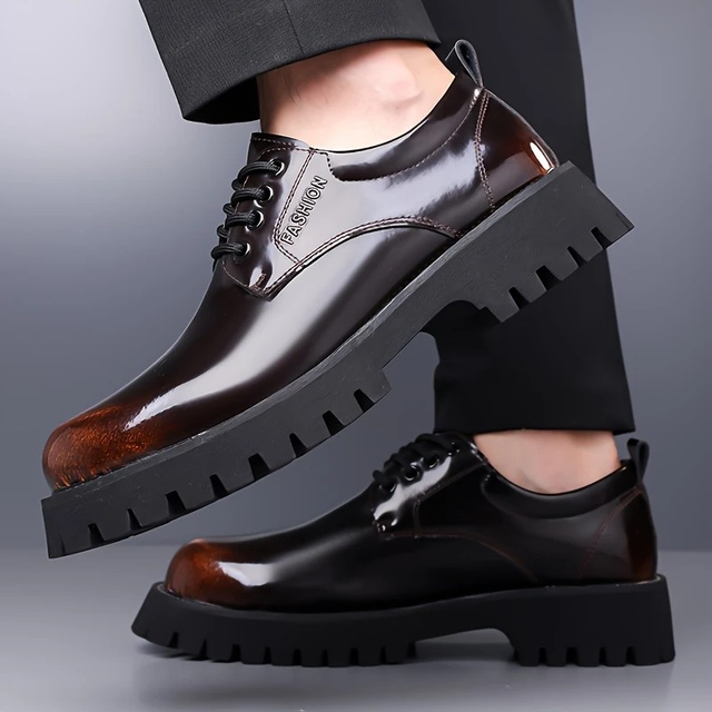 2025 New Men'S Genuine Dress Shoes - Black & Brown Two-Tone Design, Lace-Up Business Casual Shoes with Rubber Sole for All-Season Comfort, Formal Footwear | Sleek Shoe Design | Durable Construction, Dressy Shoes